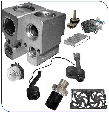Expansievetielen, sensoren, stappenmotoren, leidingen, interieurfilters, condensorventilatoren, blowers, drukschakelaars.